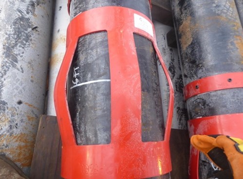 The customer initially ran casing with a zinc alloy solid body centralizers from a different supplier. During the initial run the casing was pulled out of hole (POOH) as the customer planned to clean the bottom hole assembly to clear out the ledges/restrictions. During POOH, the casing got stuck due to casing parting near the reamer shoe connection and the solid body centralizers and stop collars broke up and were lost downhole.