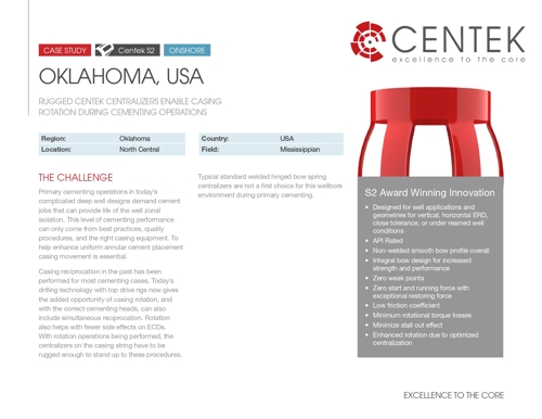 In a 3 well comparison in Oklahoma, USA, Centek Centralizers are proven to aid rotation, enhancing uniform annular cement placement.